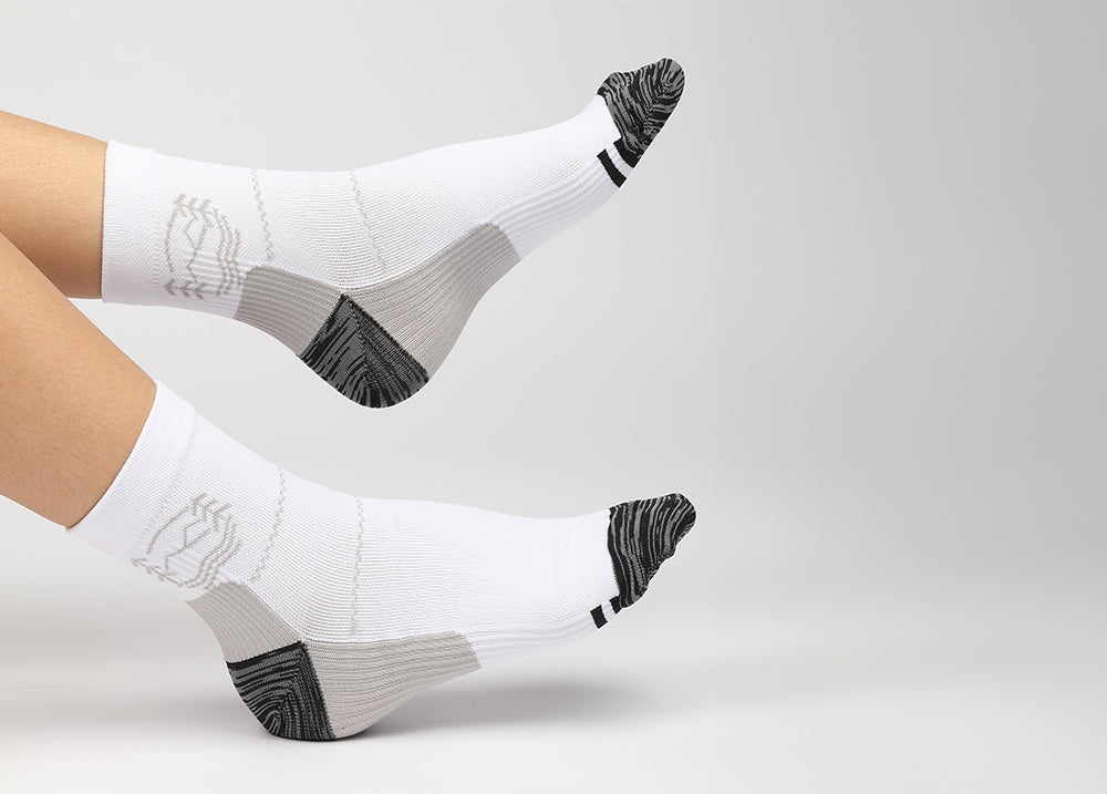 Unsere Kompressionsstrümpfe für den Sport sind atmungsaktiv und halten deine Füße auch bei intensiven Trainingseinheiten trocken und komfortabel.